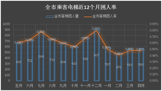 注:全市客梯困人率=每月客梯困人次数÷当月全市在用客梯总数×100%