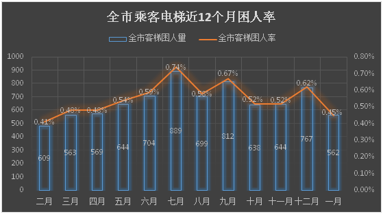 注:全市客梯困人率=每月客梯困人次数÷当月全市在用客梯总数×100%