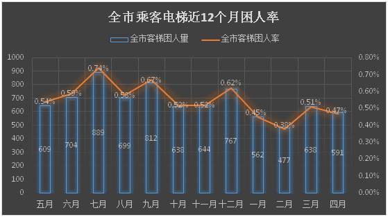 注:全市客梯困人率=每月客梯困人次数÷当月全市在用客梯总数×100%